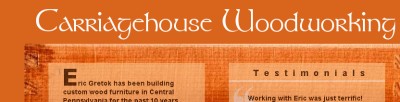This is small web page I put together for a friend's new business, Carriagehouse Woodworking. Many years ago he built me a beautiful mahogany desk for just the price of materials, so this is the least I could do to re-pay him.